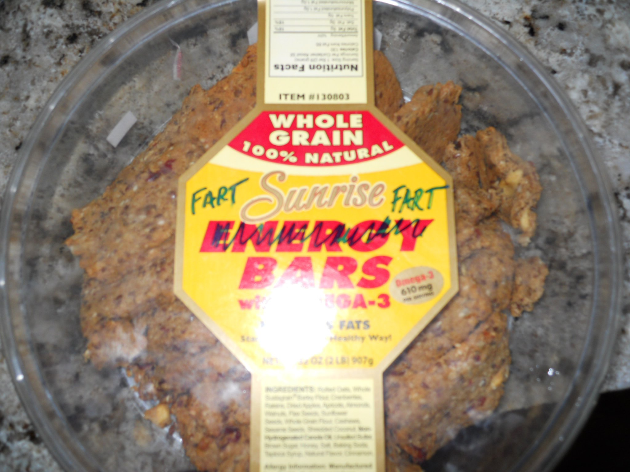 Then they disappeared, only to return moments later, with a vat of Costco’s Whole Grain 100% Natural Sunrise Energy Bars with Omega-3.