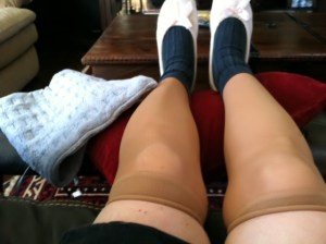 I know what you’re thinking. You’re thinking, “Didn’t I see this very picture in Cosmo, Italian Vogue, and Asses to Spank?” No. No, you actually didn’t. This is just one of those fortunate pictures where the glamour almost sneaks up on you. Compression stockings that roll down at the actual point of pain, pasty white legs underneath, black socks, and ballerina slippers all delicately offset by the angled pillow and offset heating pad. It’s practically art. I know. I get it. Your confusion is understandable.