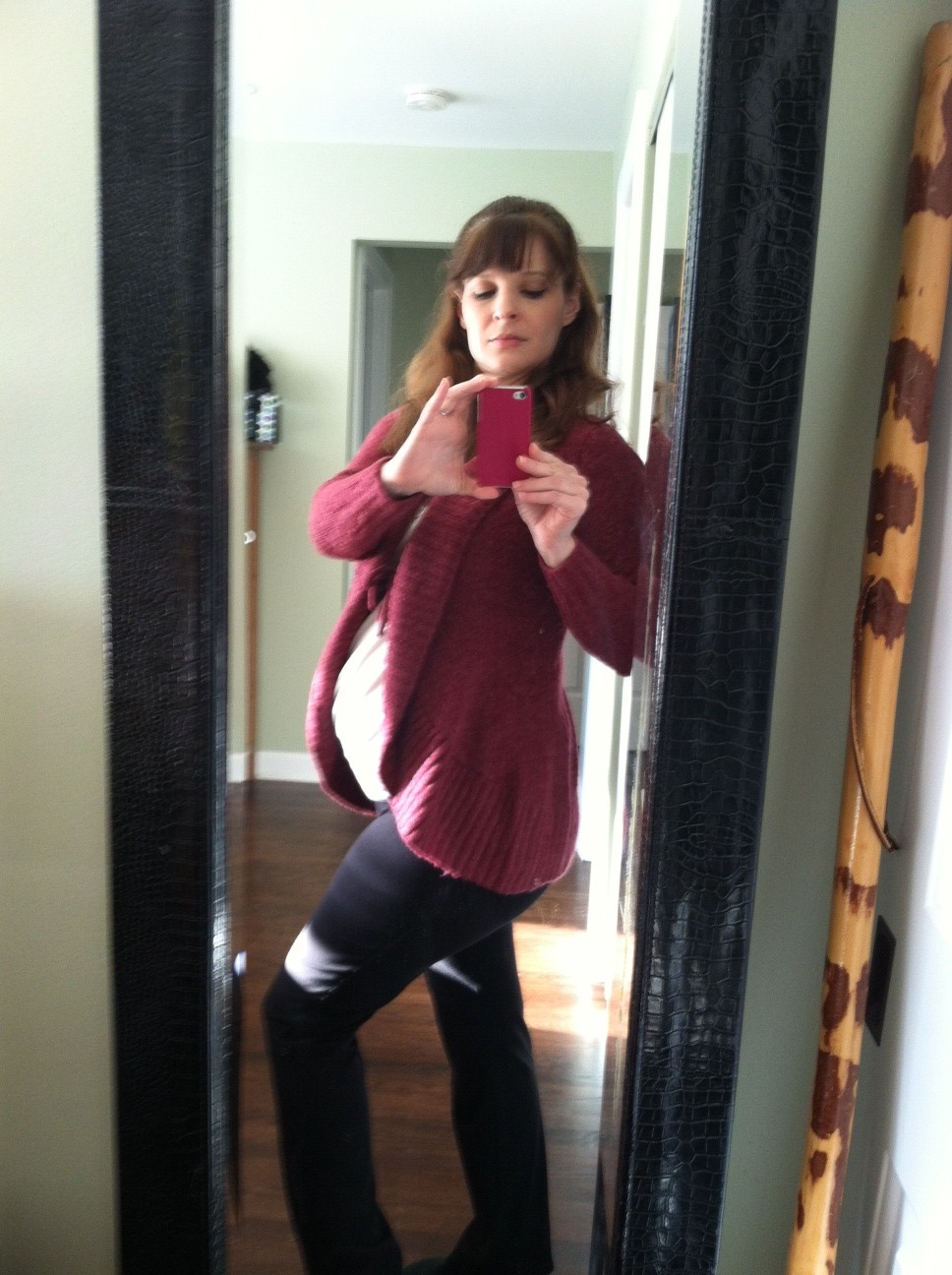 I, of course, workout in my home gym.  What? I always take pictures of my knee bends. And yes, I’m wearing a sports bra.