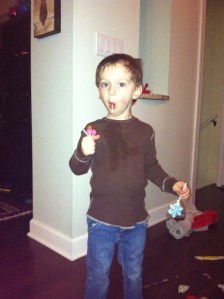 Someone found the goody bag from the party we went to. Someone has yet to learn the word "moderation."