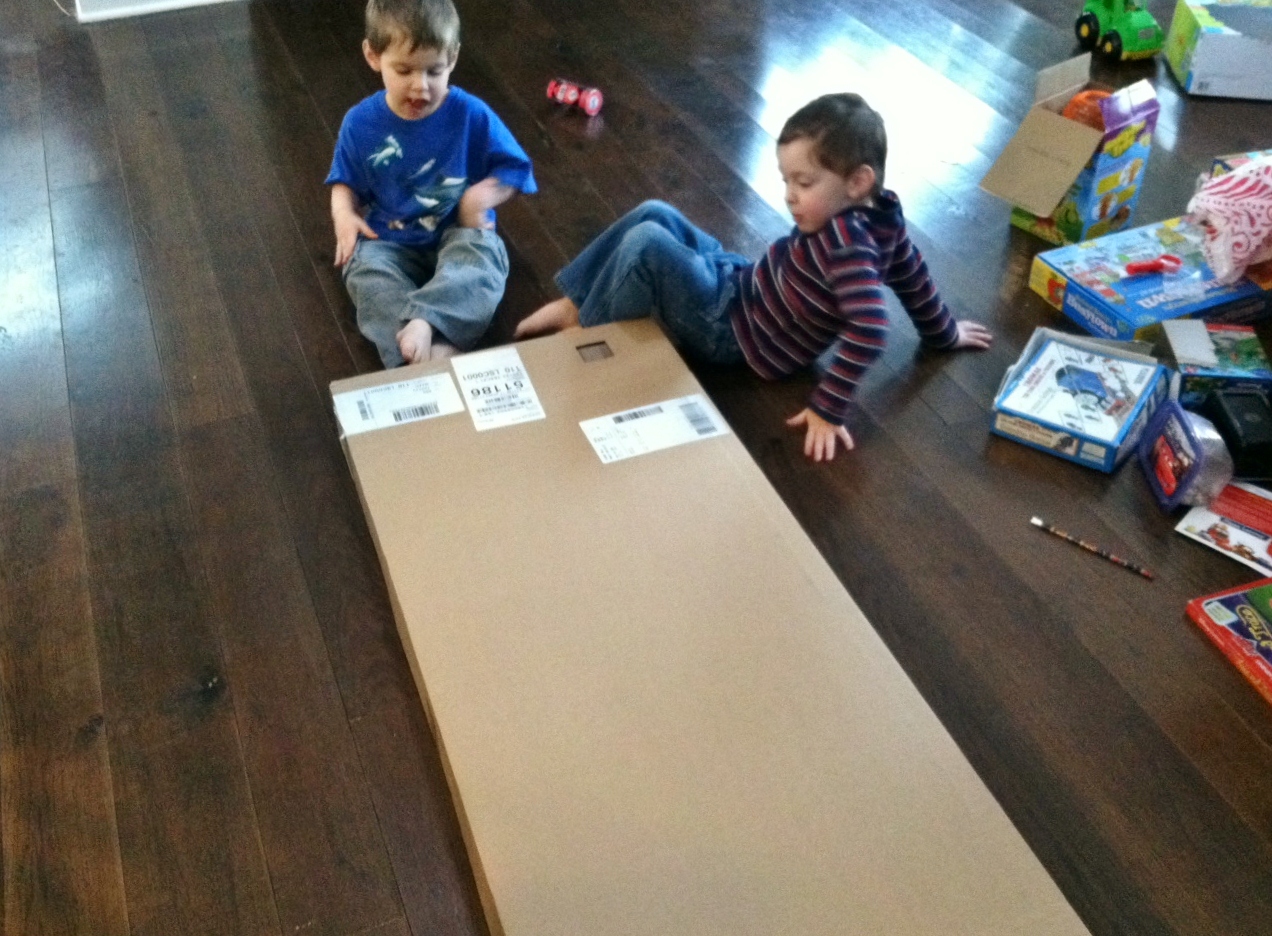 The Big Boy dresser has arrived. Daddy will put it together only to hate the color, return it, and start anew in a few days.