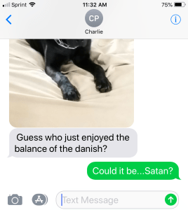 In the last four weeks, he’s eaten my daughter’s birthday cake, an entire loaf of bread, two blueberry English muffins, a bag of potato chips, two donuts (and the box), and…