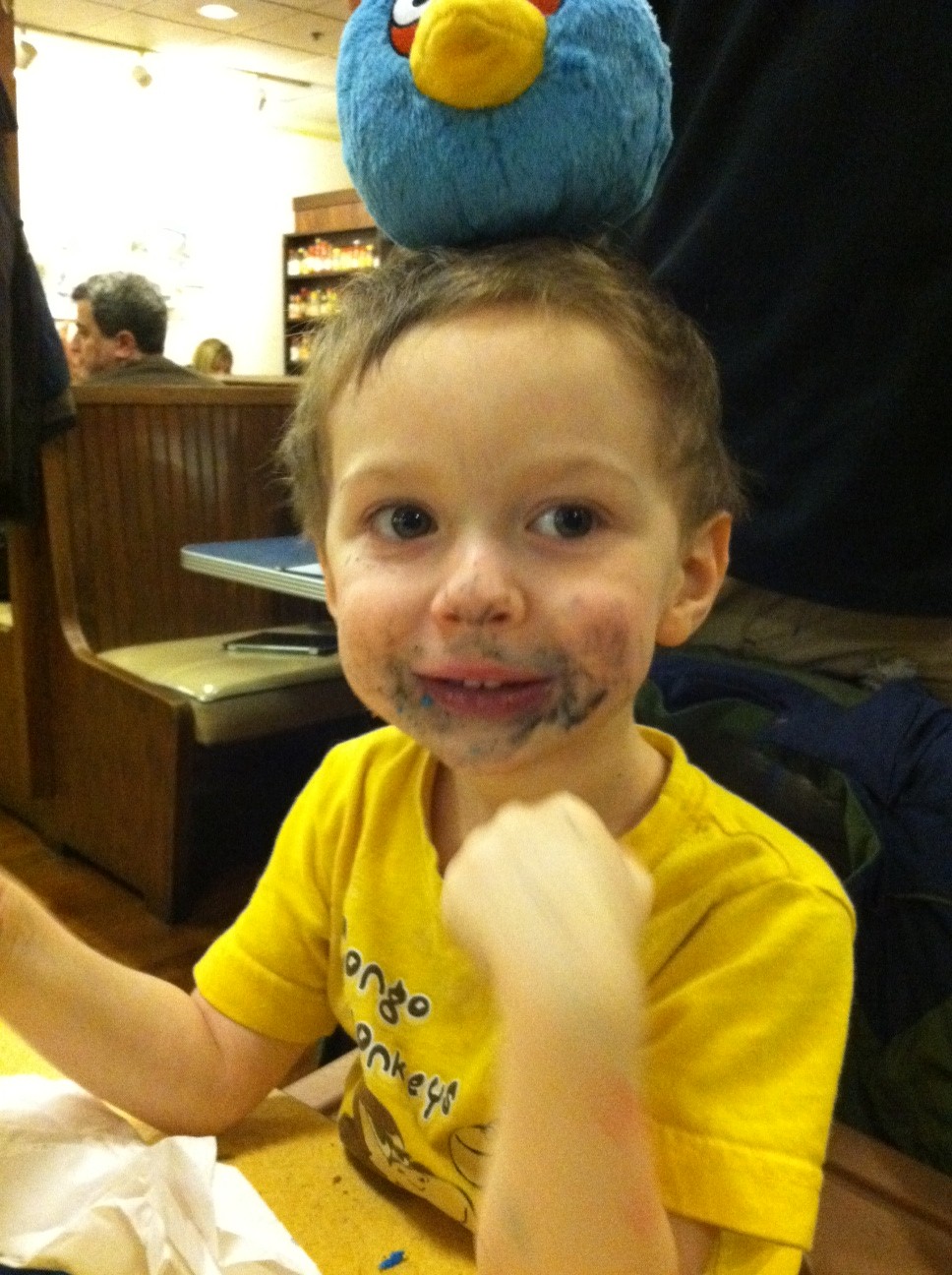 Monkey J. didn't like that cookie at all. Nope. No way. Also, there's a bird on his head.